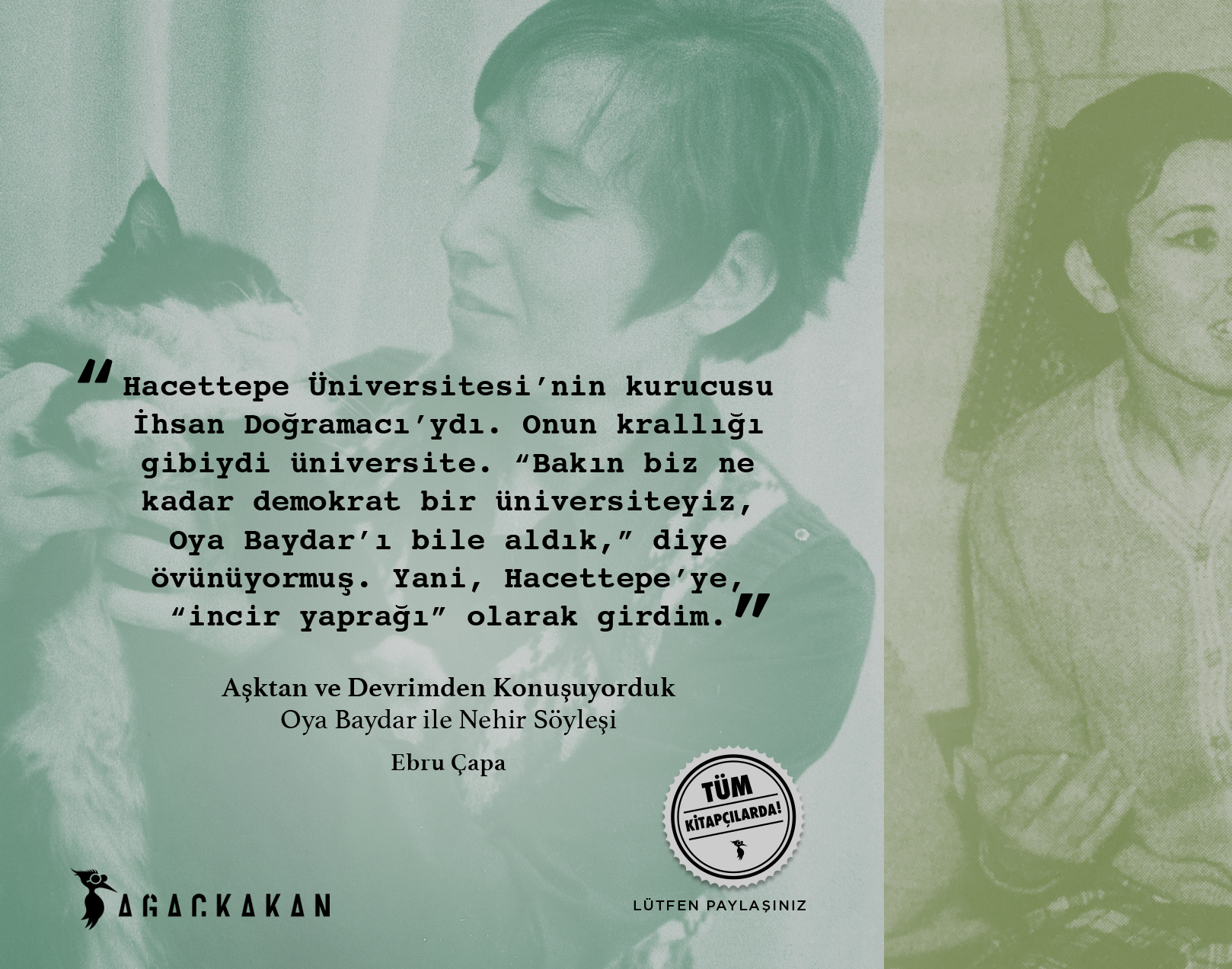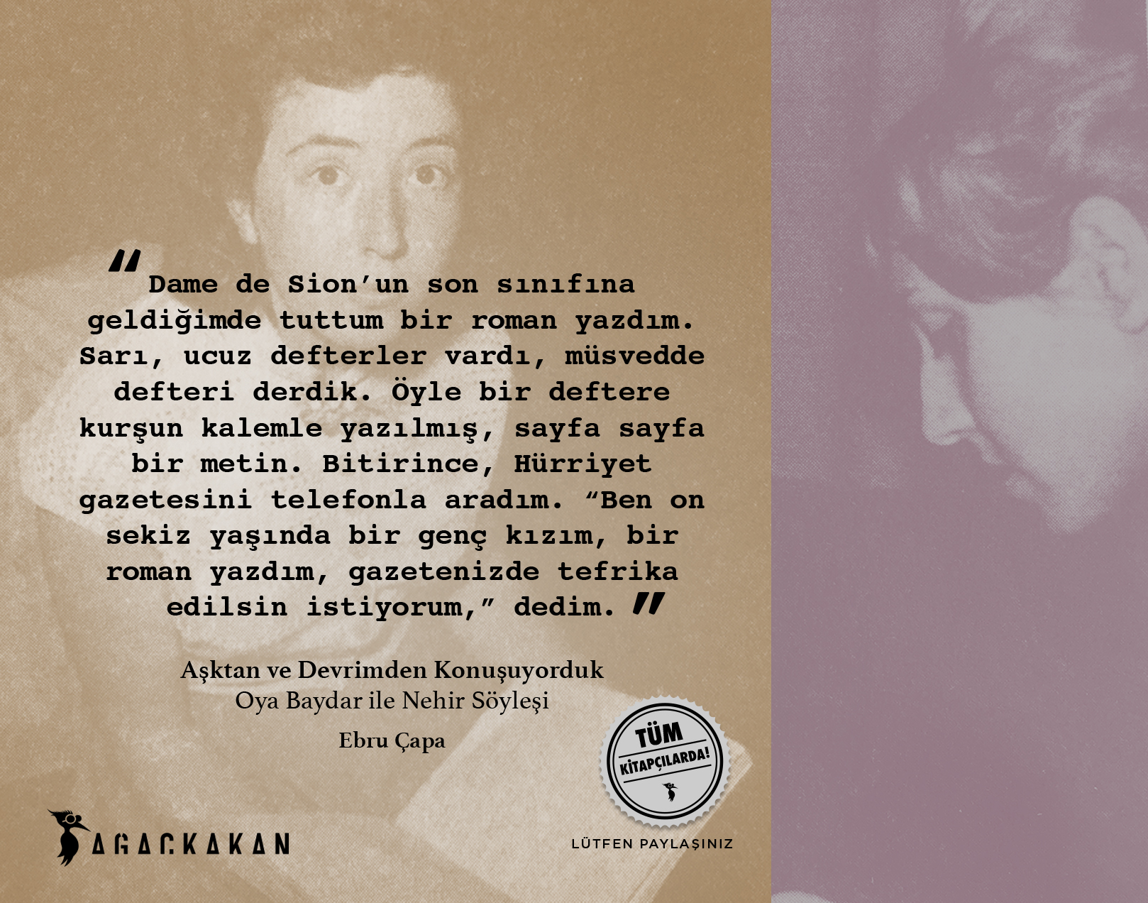 “Yetmiş yedi yaşındayım; sadece Türkiye’de değil dünyada da aydınlık bir gelecek umudunun yeşerdiği dönemi yaşadım, sonra umutlarımızın çöküşüne tanık oldum ve bugünlere geldik. Bu sürecin hem tanığı, hem sanığı, hem kurbanı olan bir kadının hikâyesi olarak okunursa ilgi çekici olabilir belki.”